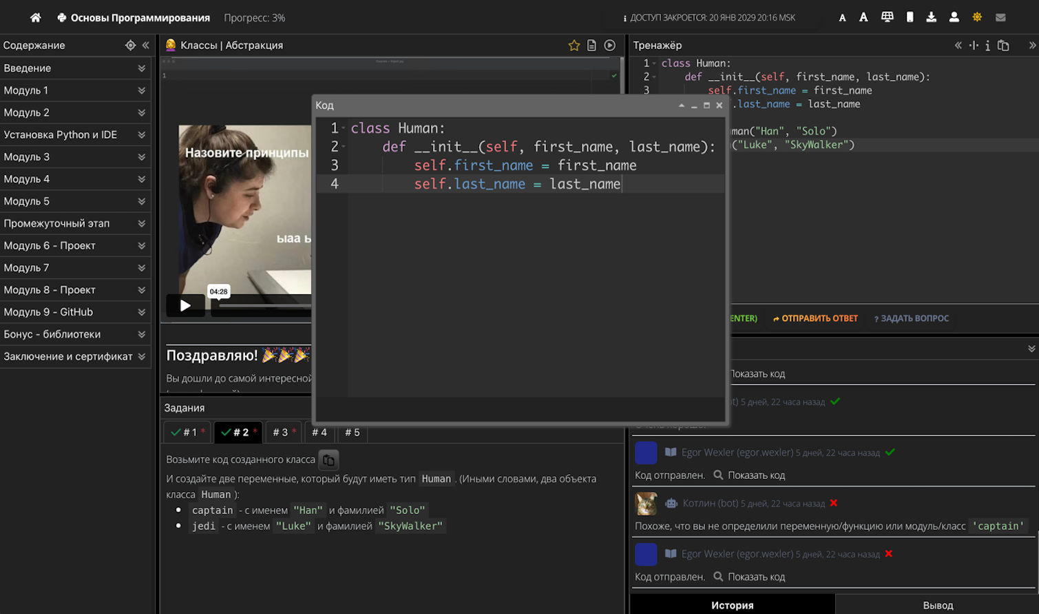 Мы открыли доступ к первым урокам данного курса, где вы сможете оценить стиль и формат обучения, платформу и технические возможности.